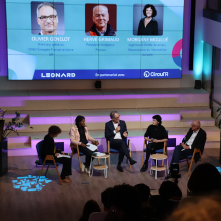 How can we facilitate the transition to scale? This question was the common thread running through the discussions at Leonard between Claire Batbedat, Senior Consultant in Circular Economy at Circul’R, Olivier Genelot, Managing Director of VINCI Energies France tertiaire IDF, Hervé Grimaud, Founding Chairman of Proclus, Morgane Moullié-Chauvet, Project Manager for ‘Adaptation to Climate Change – Energy and Climate’ at the Observatoire de l’Immobilier Durable and Isabelle Spiegel, Director of the Environment and member of VINCI’s Executive Committee.